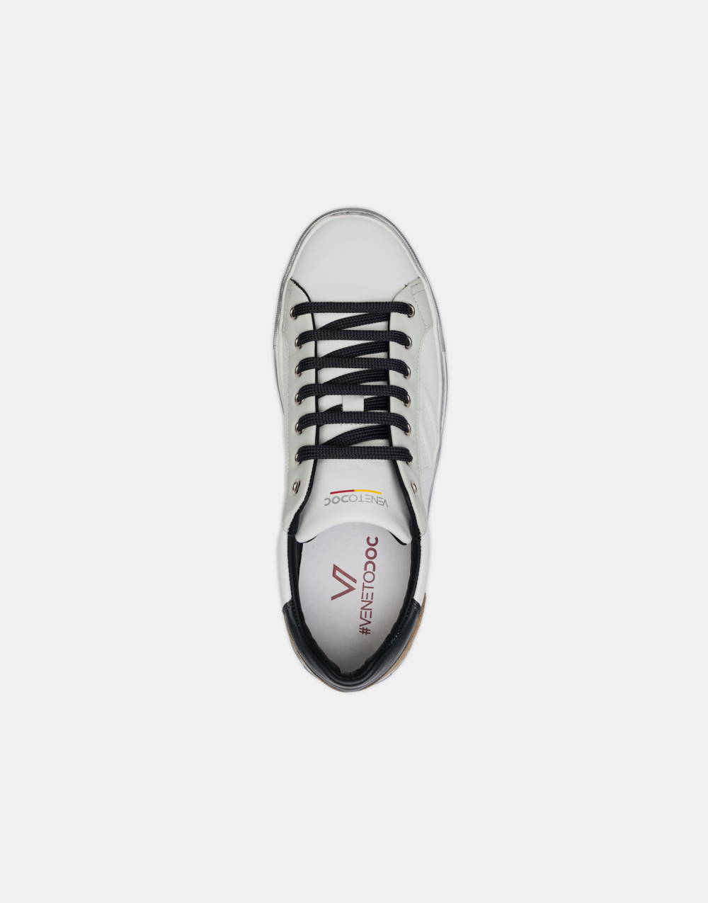 Scarpa realizzata 100% in Veneto con materie prime di aziende venete. Tomaia in pelle, con materiali sostenibili, chrome free. Fodera in pelle. Laccio in cotone. Suola spazzolata in gomma
