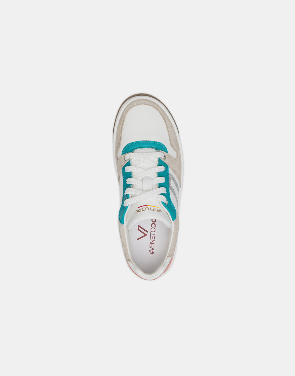 Scarpa realizzata 100% in Veneto con materie prime di aziende venete. Tomaia in pelle e crosta, con materiali sostenibili, chrome free. Fodera in pelle. Laccio in cotone. Suola in gomma